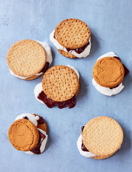 Ingredients: biscuits, 1–2 marshmallows, 1 square chocolate