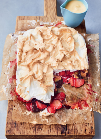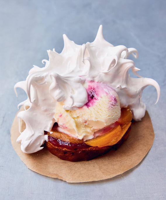 Golden meringue, soft fruit, and frozen ice cream all baked to perfection. This playful twist on the classic Alaska is crisp outside, cool inside, and pure fun.