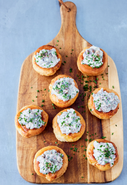 Crisp pastry spirals filled with golden mushrooms, garlic, and creamy soured cream buttery, flaky, and perfectly bite-sized.