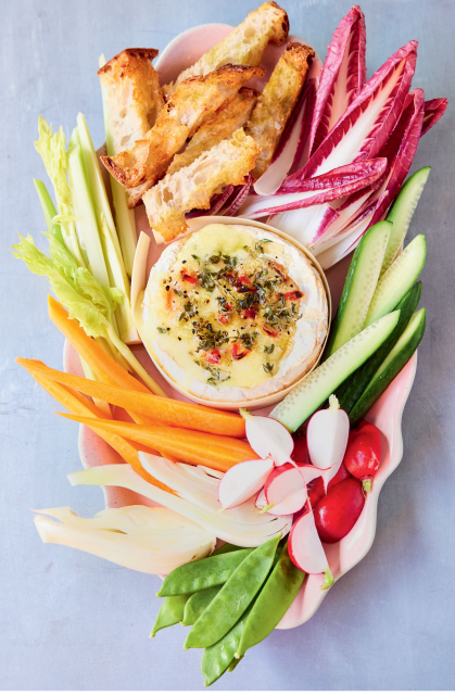 Warm, gooey Camembert baked with thyme and honey, surrounded by crunchy bread and fresh veggies for dipping. It’s pure indulgence in a box.