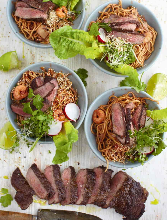 4. Sizzling Hoisin Steak & Prawn Noodle Bowls